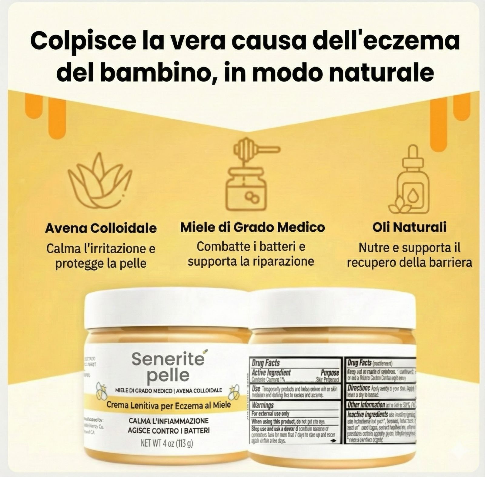 È particolarmente efficace nel trattamento dei sintomi dell'eczema, come prurito, arrossamento e pelle irritata. Grazie alle sue proprietà antibatteriche, aiuta anche a ridurre le flare-up dovute a batteri comuni.