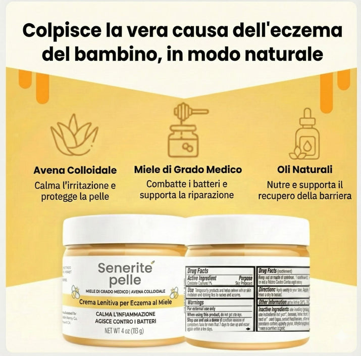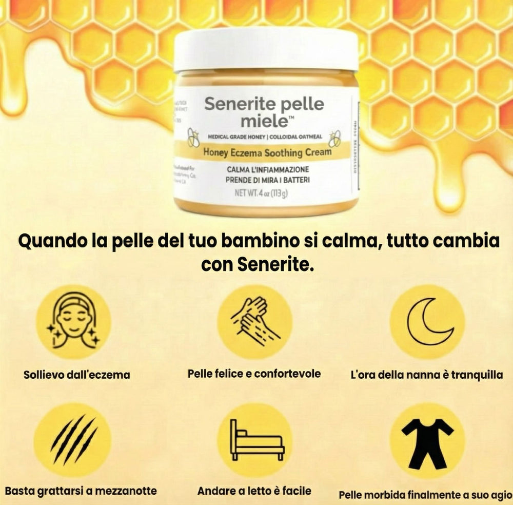 Il nostro miele mantiene gli enzimi antibatterici naturali che aiutano a proteggere e sostenere la pelle irritata.